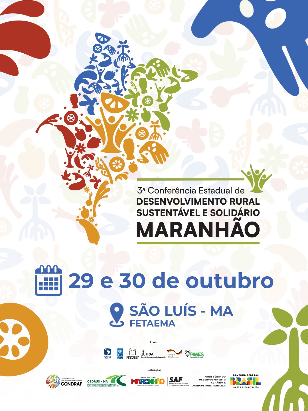 O Maranhão vai realizar a 3ª Conferência Estadual de Desenvolvimento Rural Sustentável e Solidário (3ª CEDRSS), etapa preparatória para a 3ª Conferência Nacional, tem como objetivo construir uma agenda política estratégica capaz de responder aos desafios da transformação agroecológica dos sistemas alimentares e do Brasil Rural. O lema desta edição é: “O Brasil Rural: Raiz da Vida, Fonte do Bem Viver”. A Conferência Estadual será dias 29 e 30 de outubro, em São Luís-MA.