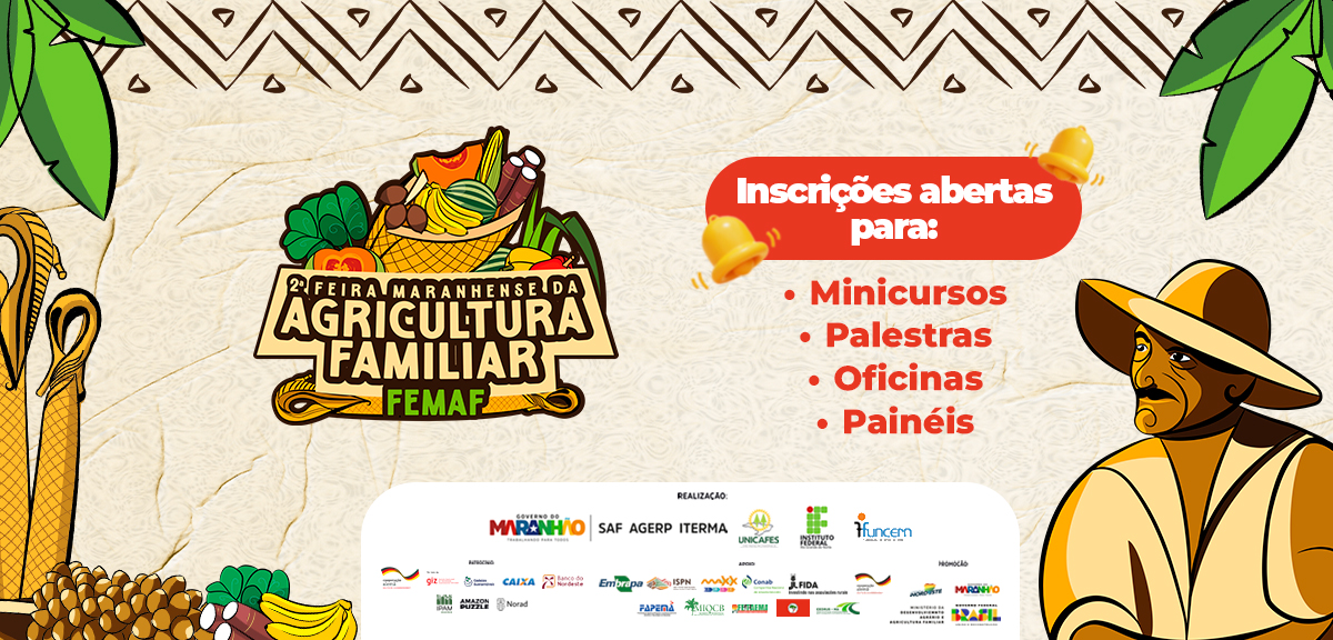 2ª Feira Maranhense da Agricultura Familiar – FEMAF será realizada nos dias 4, 5, 6 e 7 de dezembro de 2024, em São Luís, e tem o objetivo de promover o fortalecimento da agricultura familiar por meio da divulgação das inovações tecnológicas de iniciativas do produtor rural, da exibição das riquezas e potencialidade dos territórios que incentivem a melhoria socioeconômica dos agricultores familiares e a sustentabilidade da produção.